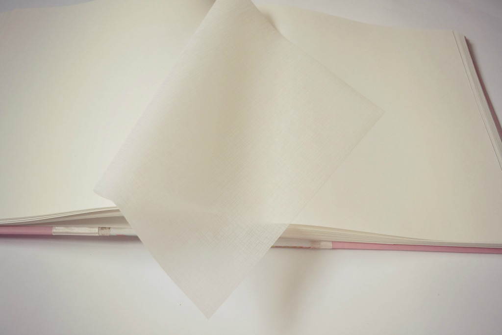 Album vintage, marimea 30×30 cm, 100 pagini albe cartonate, cu hartie de pergament intre file pentru protectia pozelor. Coperta e realitata dintr-un colaj de foi dintr-o carte veche.