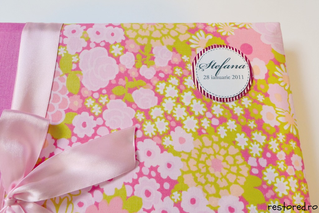 Albumul acesta a mers la Targu Frumos, Iasi, dupa ce o pietena a vazut albumul pe care l-am facut pentru Raluca. Prietena Ralucai are o fetita, Stefana, care a implinit 2 anisori. Sunt sigura ca parintii i-au facut o multime de poze, asa se explica de ce si-au dorit un album mare si incapator. Albumul acesta e cel mai mare din cate am facut pana acum, are 33×37 cm, abia mi-a incaput deschis pe masa 🙂 Insa va fi mai mult decat incapator pentru pozele Stefanei (cel putin din primii 2 ani :))