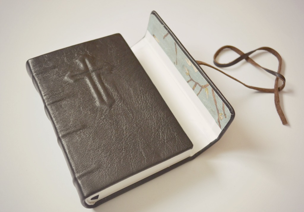 M-am bucurat sa am ocazia sa folosesc pielea asta din nou. E preferata mea, asa e si Biblia mea. De data asta fericita cititoare e Anca Tamas. M-a rugat sa-i pun un sistem de inchidere si unul pentru purtatul unui pix. Dupa cateva incercari, varianta asta a fost castigatoare. Imi place asa mult cum a iesit, dar cel mai tare ma bucura ca si Ancai i-a placut 🙂